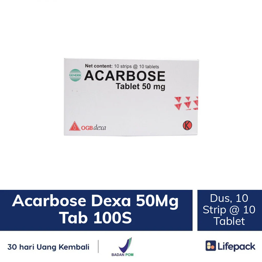 - Acarbose 50 mg <p> Acarbose adalah salah satu jenis obat yang sering digunakan pada penderita diabetes melitus tipe 2. <p>