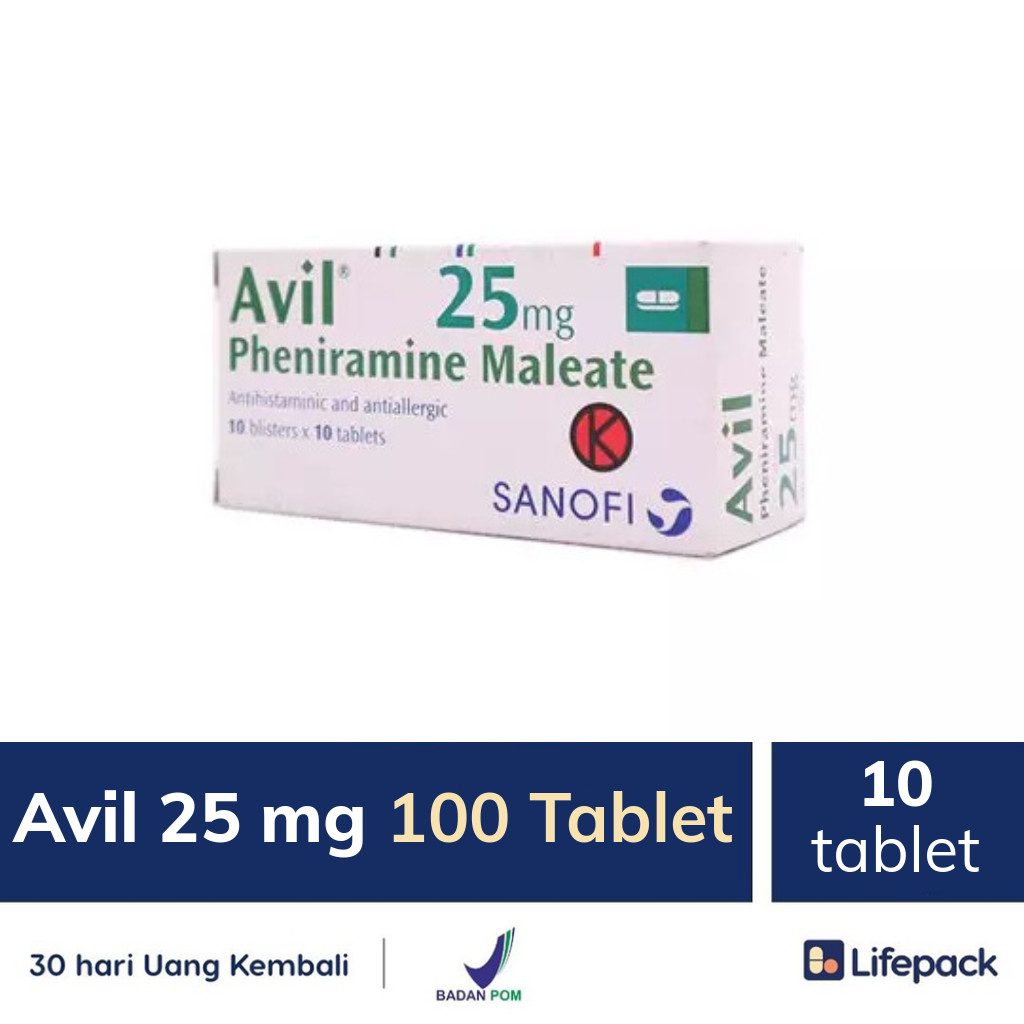 AVIL 25 MG 10 TABLET untuk perawatan rhinitis alergi, hidung gatal dan berair, bersin, iritasi mata, mabuk dan kondisi lainnya. Dalam penggunaan obat ini harus SESUAI DENGAN PETUNJUK DOKTER.