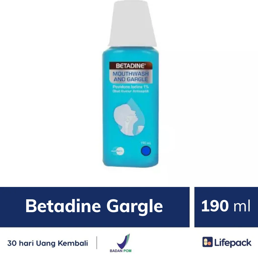 Betadine Gargle merupakan obat kumur yang bermanfaat untuk menjaga kesehatan dan kebersihan rongga mulut. Betadine Gargle ini memiliki kandungan berupa Povidone iodine 1%. Kandungannya ini bekerja dengan cara merusak sel kuman yang berpotensi untuk mengganggu kesehatan rongga mulut, sehingga kuman tersebut jadi tak aktif lagi. Berkumur dengan Betadine Gargle secara rutin, akan bisa membantu mengatasi dan mencegah terjadinya gangguan kesehatan mulut. Anda bisa gunakan Betadine Gargle ini untuk mengatasi dan mencegah bau mulut, sariawan, sakit tenggorokan, gusi bengkak, dan napas tak segar.