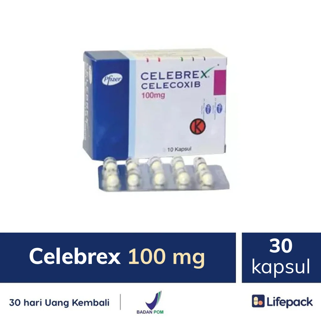 CELEBREX 200 MG KAPSUL adalah obat golongan antiinflamasi nonsteroid (OAINS) yang mengandung Celecoxib. Obat ini bekerja secara selektif pada enzim siklooksigenase (COX-2). Celecoxib secara reversibel menghambat transformasi asam arakidonat menjadi prostaglandin prekursor. Aktivitasnya yang selektif pada COX-2 membuatnya memiliki aktivitas sebagai antipiretik, analgesik dan anti inflamasi dan meminimalkan efek samping obat pada saluran pencernaan (misalnya tukak lambung) yang umum terjadi pada penggunaan obat-obat NSAID non selektif (bekerja pada COX-1 dan COX-2). Obat ini digunakan untuk mengatasi nyeri dan pembengkakan akibat rheumatoid arthritis, gout arthritis serta ketika pasien juga mengalami peradangan, dan mengurangi gangguan inflamasi (peradangan) secara umum. Dalam menggunakan obat ini HARUS SESUAI DENGAN PETUNJUK DOKTER.