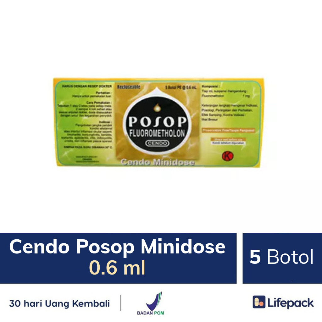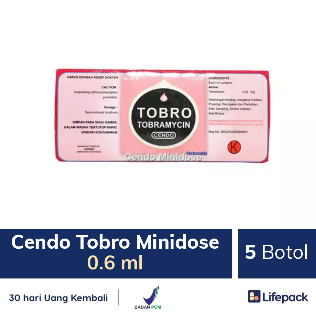 CENDO TOBROSON MINIDOSE adalah obat tetes mata yang mengandung tobramycin sebagai antibiotik aminoglikosida yang di gunakan untuk mengobati infeksi akibat bakteri. Dalam mengobati infeksi tobramycin bekerja dengan cara membunuh bakteri dan menekan pertumbuhannya agar tidak muncul kembali. Dalam penggunaan obat ini harus SESUAI DENGAN PETUNJUK DOKTER.