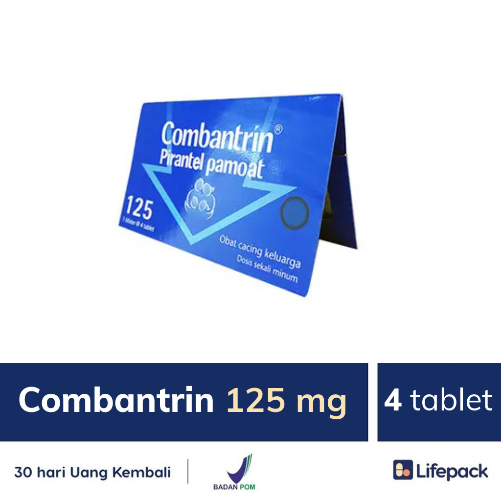 COMBANTRIN 125 MG TABLET merupakan obat cacing yang bekerja untuk mengatasi cacing kremi (Enterobius vermicularis), cacing gelang (Ascaris lumbricoides), cacing tambang (Ancylostoma duodenale), Cacing tambang (Necator americanus), cacing Trichostrongyfus colubriformis dan Trichostrongylus orientalls. Obat ini mengandung zat aktif Pirantel Pamoat yang bekerja dengan melumpuhkan cacing dan mengeluarkannya dari dalam tubuh melalui tinja, biasanya tanpa memerlukan pencahar.