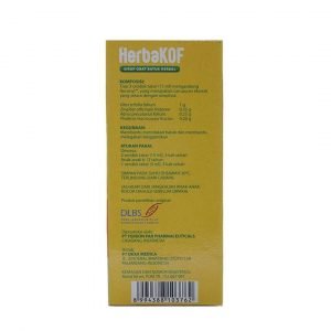 Herbakof sirup merupakan sirup obat batuk yang mengandung ekstrak bahan-bahan herbal alami seperti daun legundi, jahe, daun saga, dan buah mahkota dewa.