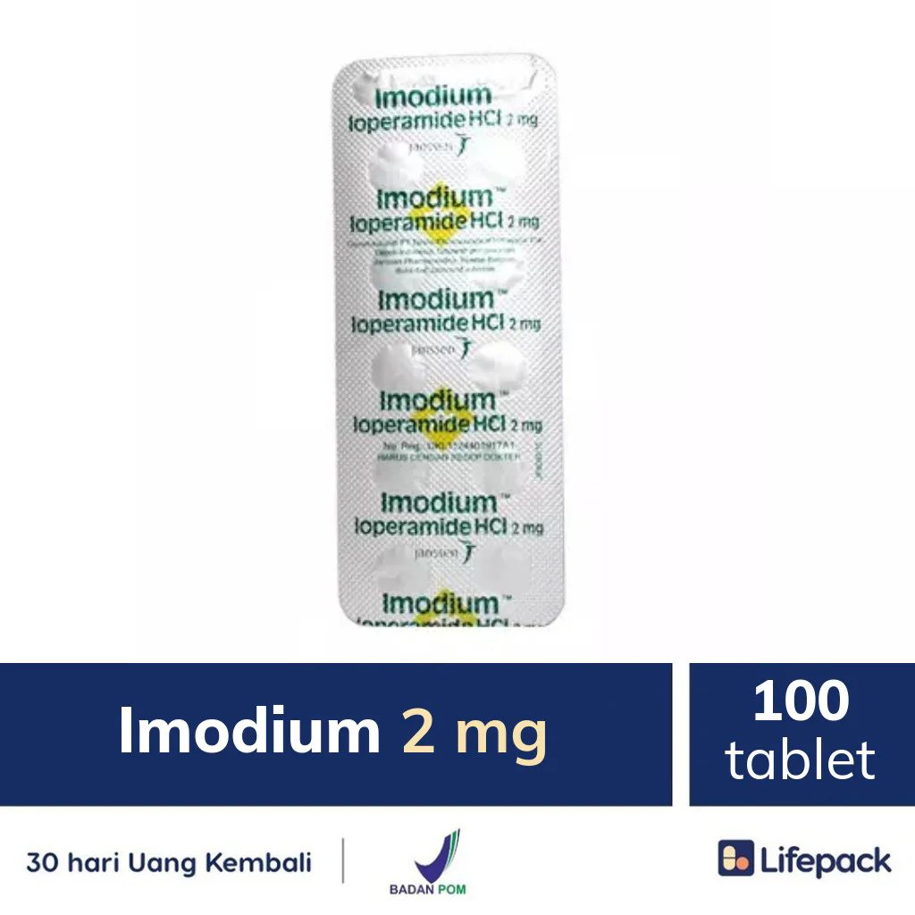 IMODIUM 2 MG TABLET merupakan obat antidiare dengan kandungan Loperamid HCl 2 mg. Manfaat obat Imodium adalah untuk mengobati diare akut dan kronis. Fungsi obat Imodium efektif untuk meredakan frekuensi diare. Kegunaan obat imodium dapat dirasakan sesuai dengan dosis dan cara konsumsi yang HARUS SESUAI DENGAN PETUNJUK DOKTER.