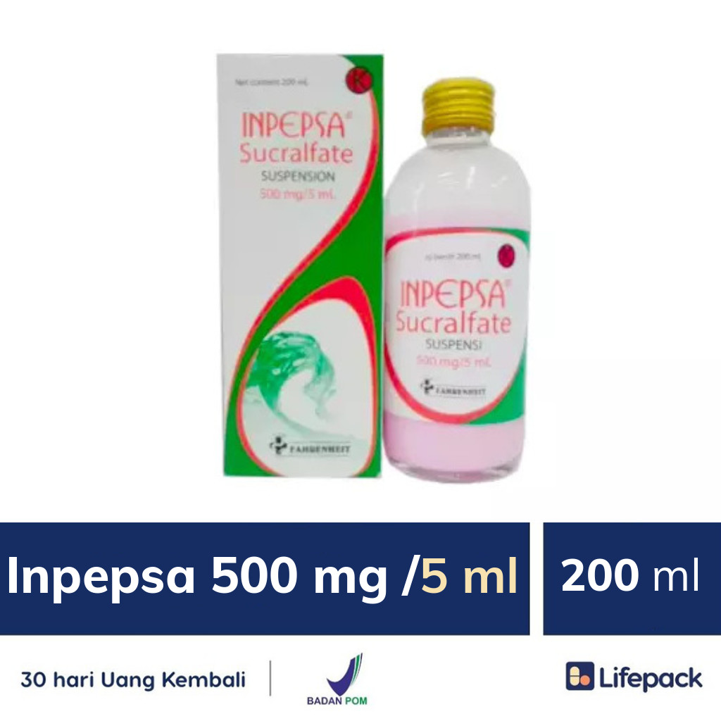 INPEPSA SIRUP merupakan obat dengan kandungan Sucralfate dalam bentuk sirup. Obat ini digunakan untuk pengobatan jangka pendek dan jangka panjang pada tukak lambung dan usus, gastritis kronik. Dalam penggunaan obat ini harus SESUAI DENGAN PETUNJUK DOKTER.