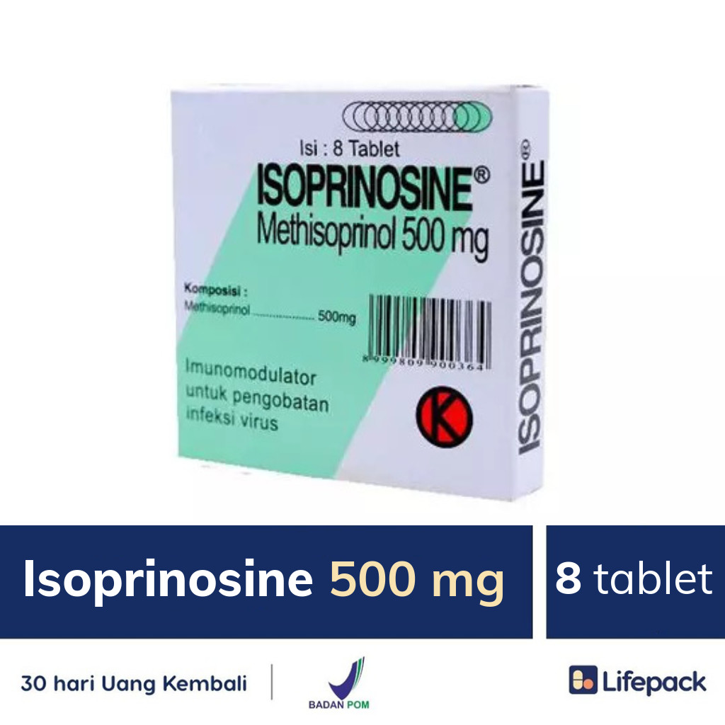 Sadarkah jika kita hidup berdampingan dengan virus? Terlebih di saat pandemi seperti sekarang ini, semua orang menjadi lebih awas terhadap kesehatan dan bahaya virus. Bukan hanya virus Covid yang harus kita hindari, namun juga berbagai jenis virus lainnya juga harus dihindari. Salah satunya adalah virus herpes simplex yang juga sudah banyak menyerang dan memakan korban. Untuk mencegah terkena virus herpes dan virus lainnya, ISPRINOL 500 MG TAB dapat kita manfaatkan dengan baik. Obat ini mengandung Methisoprinol. Methisoprinol sendiri adalah obat yang biasa digunakan untuk mengobati berbagai jenis infeksi yang disebabkan oleh virus. Obat ini dapat mengobati penyakit cacar air, herpes simplex, hepatitis B, influenza, dan bronkitis. Methisoprinol bekerja dengan meningkatkan sistem imun sehingga mampu menghadapi serangan virus.