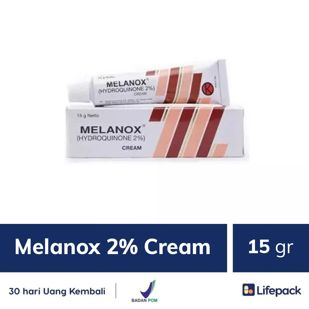 MELANOX 2% CREAM adalah obat yang digunakan untuk mengurangi hiperpigmentasi kulit. Obat Melanox Cream mengandung Hydroquinone, yang mengurangi terjadinya hiperpigmentasi dengan cara mengganggu sistem tirosin-melanin. Dalam penggunaan obat ini harus SESUAI DENGAN PETUNJUK DOKTER.