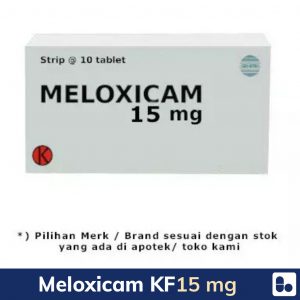 MELOXICAM 15 MG TABLET adalah obat anti inflmasi non steroid (OAINS). Obat ini digunakan untuk meredakan gejala-gejala arthritis, misalnya peradangan, pembengkakan, serta kaku dan nyeri otot. Contoh penyakit radang persendian yang biasanya ditangani dengan meloxicam adalah osteoartritis, rheumatoid arthritis, dan ankylosing spondylitis. Dalam penggunaan obat ini HARUS SESUAI DENGAN PETUNJUK DOKTER.