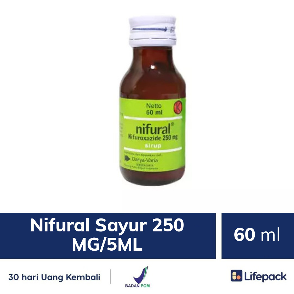 NIFURAL SIRUP adalah obat antibiotik dengan kandungan Nifuroxazid 250 mg/5 ml sirup. Nifuroxazid adalah antibiotik golongan Nitrofuran untuk mengobati infeksi pada saluran cerna yang disebabkan oleh E.Coli atau Staphylococcus. Obat ini merupakan terapi efektif untuk diare akut dan dapat diresepkan untuk diare tak akut tanpa harus menunggu hasil pengecekan feses yang mungkin terlambat atau negatif. Selain diare, obat ini digunakan untuk terapi kolitis (infeksi pada lapisan usus besar) yang disebabkan oleh bakteri Escherichia coli atau Staphylococcus. Dalam penggunaan obat ini HARUS SESUAI DENGAN PETUNJUK DOKTER.