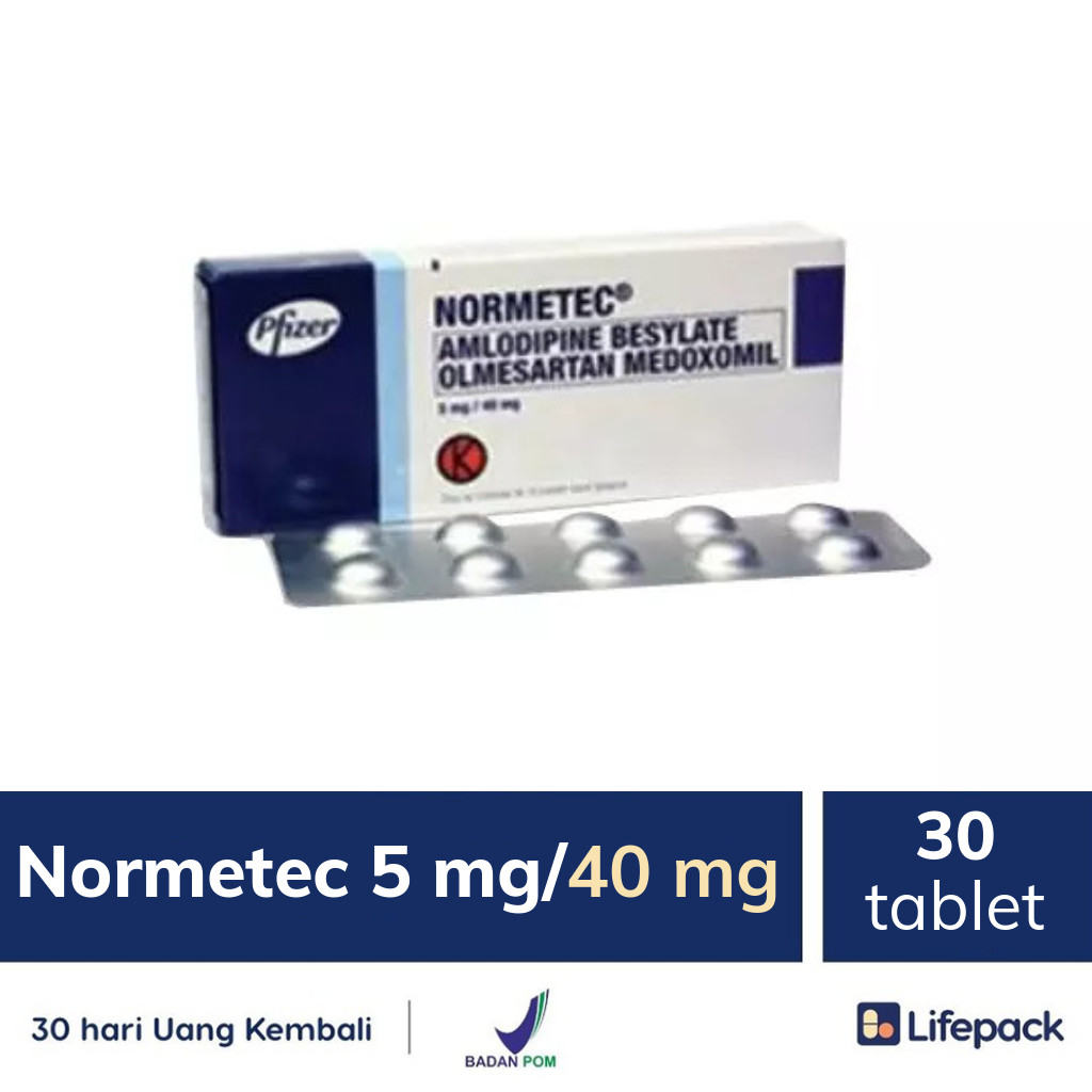 Obat Normetec untuk atasi hipertensi mengandung Amlodipine besylate dan Olmesartan medoxomil. Obat ini dapat menurunkan tekanan darah pada pasien hipertensi. Selain menurunkan tekanan darah, Normetec akan membantu menurunkan risiko gangguan kardiovaskular lainnya. Tebus tebus obat hipertensi ini di Lifepack dijamin asli tanpa antri.