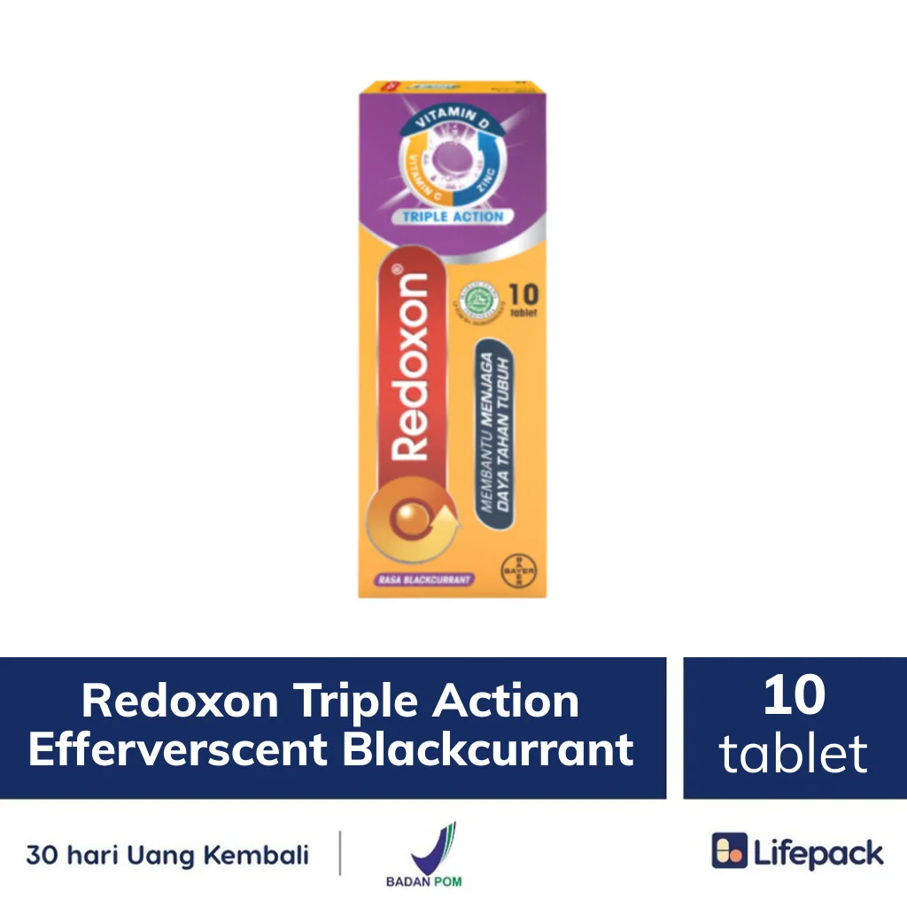 HATI - HATI DENGAN BARANG PALSU! Redoxon Eff Blackcurrant adalah suplemen untuk memelihara daya tahan tubuh. Kandungan Redoxon Blackcurrant adalah vitamin C, D dan Zinc yang mampu membantu tubuh untuk bugar secara optimal. Cukup konsumsi 1 tablet Redoxon untuk maksimalkan daya tahan tubuh setiap hari. Cara konsumsi suplemen Redoxon untuk daya tahan tubuh ini juga mudah yakni dengan dilarutkan ke dalam 1 gelas air.