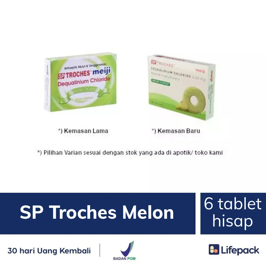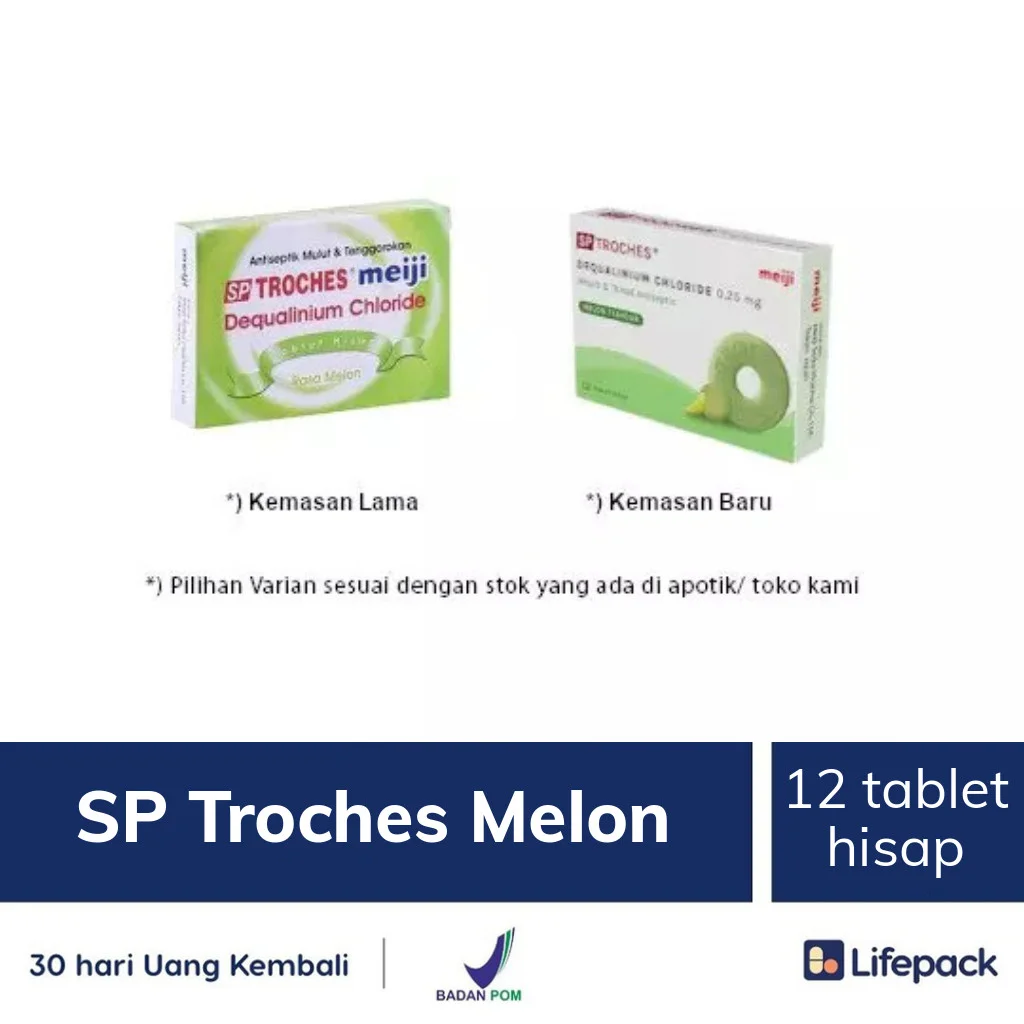 SP TROCHES MEIJI RASA MELON merupakan tablet manis yang dirancang khusus untuk larut dalam mulut berangsur-angsur tanpa dikunyah. Tablet ini mengandung zat Dequalinium Chloride yang digunakan untuk mengatasi infeksi pada rongga mulut dan tenggorokan.