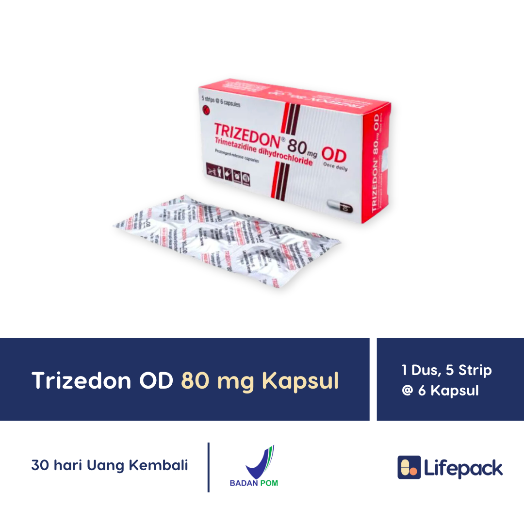 Angina merupakan penyakit yang disebabkan oleh kurangnya pasokan oksigen ke jantung. Obat Trizedon OD 80 mg merupakan obat anti angina yang digunakan untuk membantu meredakan gejala angina, seperti sakit dada. Kandungan Trimetazidine di dalamnya bekerja dengan menghambat oksidasi β asam lemak dengan memblokir tiolase 3-ketoasil-KoA rantai panjang, yang meningkatkan oksidasi glukosa. Pada pasien dengan penyakit jantung iskemik di mana pasokan oksigen ke jantung terbatas, trimetazidine bertindak sebagai agen metabolisme, menjaga tingkat intraseluler fosfat energi tinggi miokard (tingkat energi yang cukup di dalam sel otot jantung untuk menjaga kinerja dan fungsi normalnya). Sehingga, efek anti-iskemik (perlindungan terhadap kondisi iskemia) dapat dicapai tanpa memberikan efek hemodinamik (dinamika peredaran darah dan fungsi jantung) secara bersamaan.