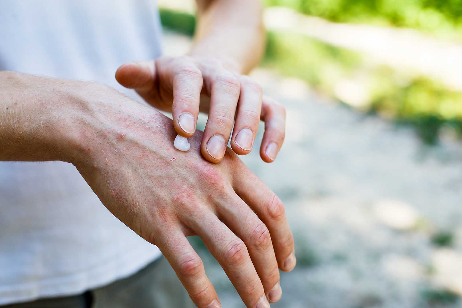 - Pada area yang gatal mengalami pengelupasan seperti terkena luka bakar